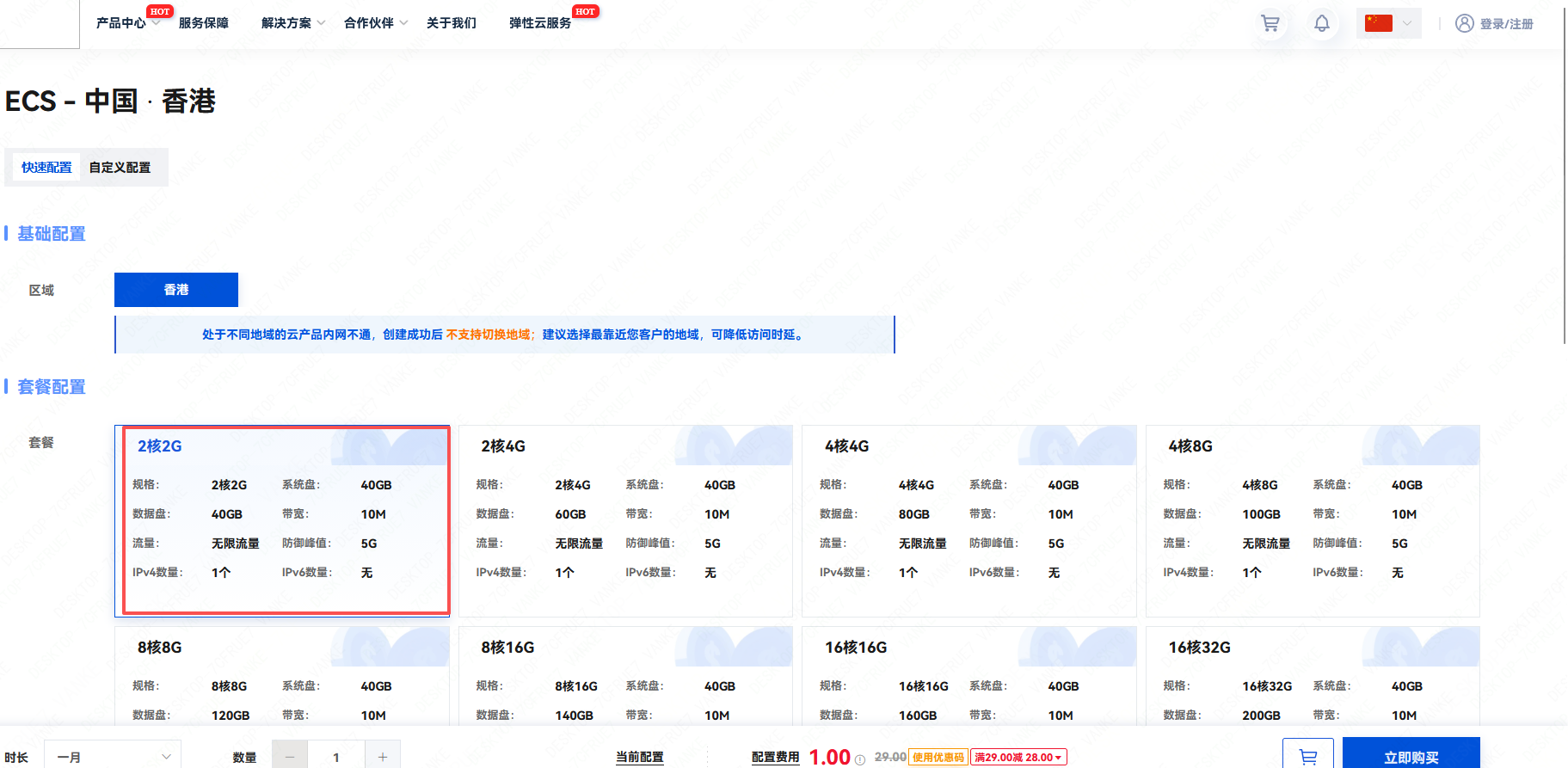 只能选2-2的配置,而且只是首月。