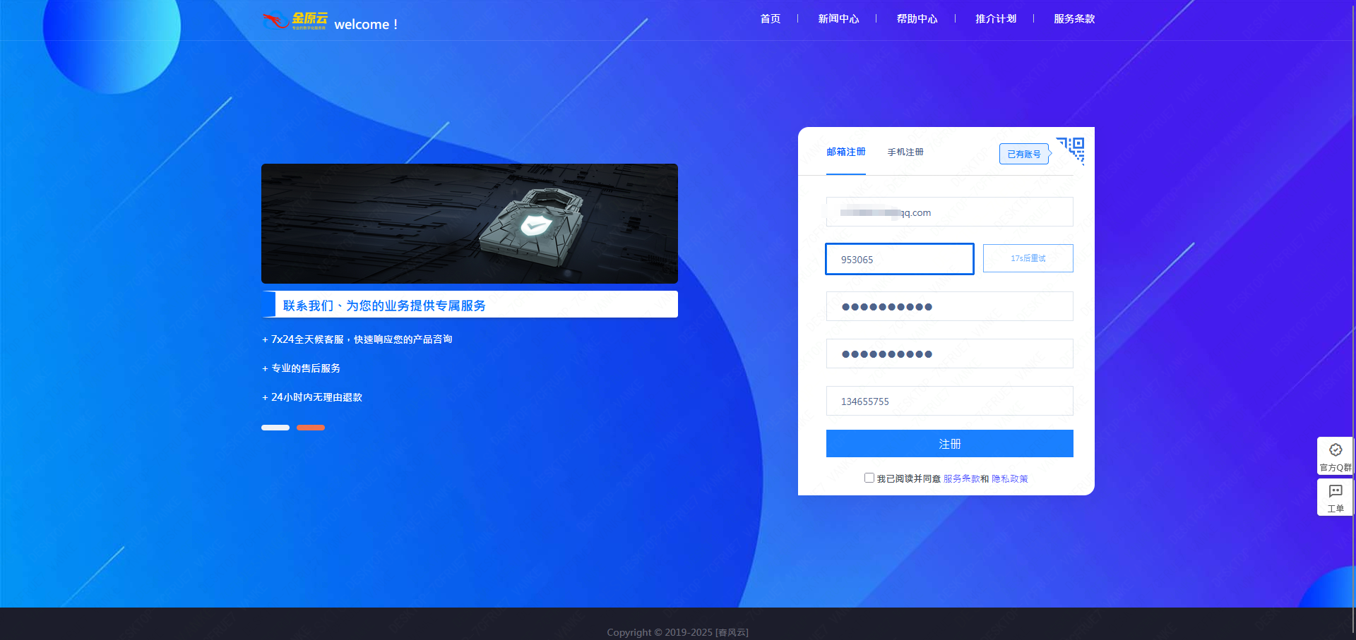 填写注册信息,支持邮箱注册