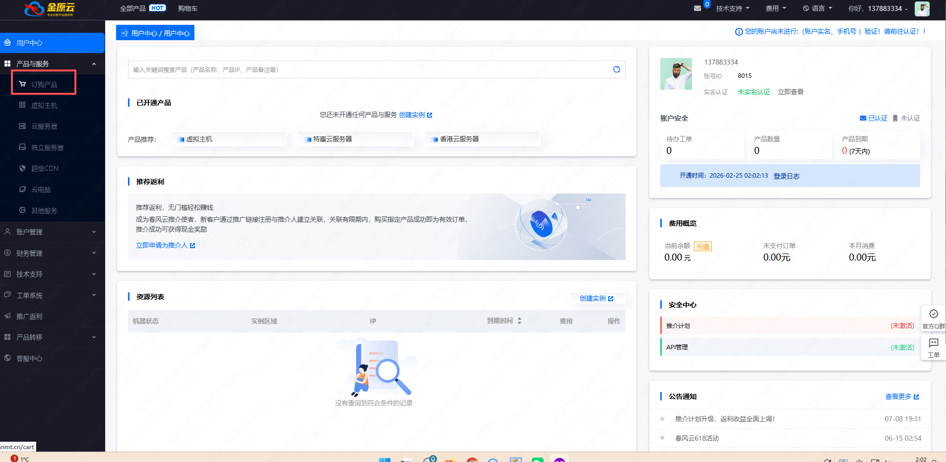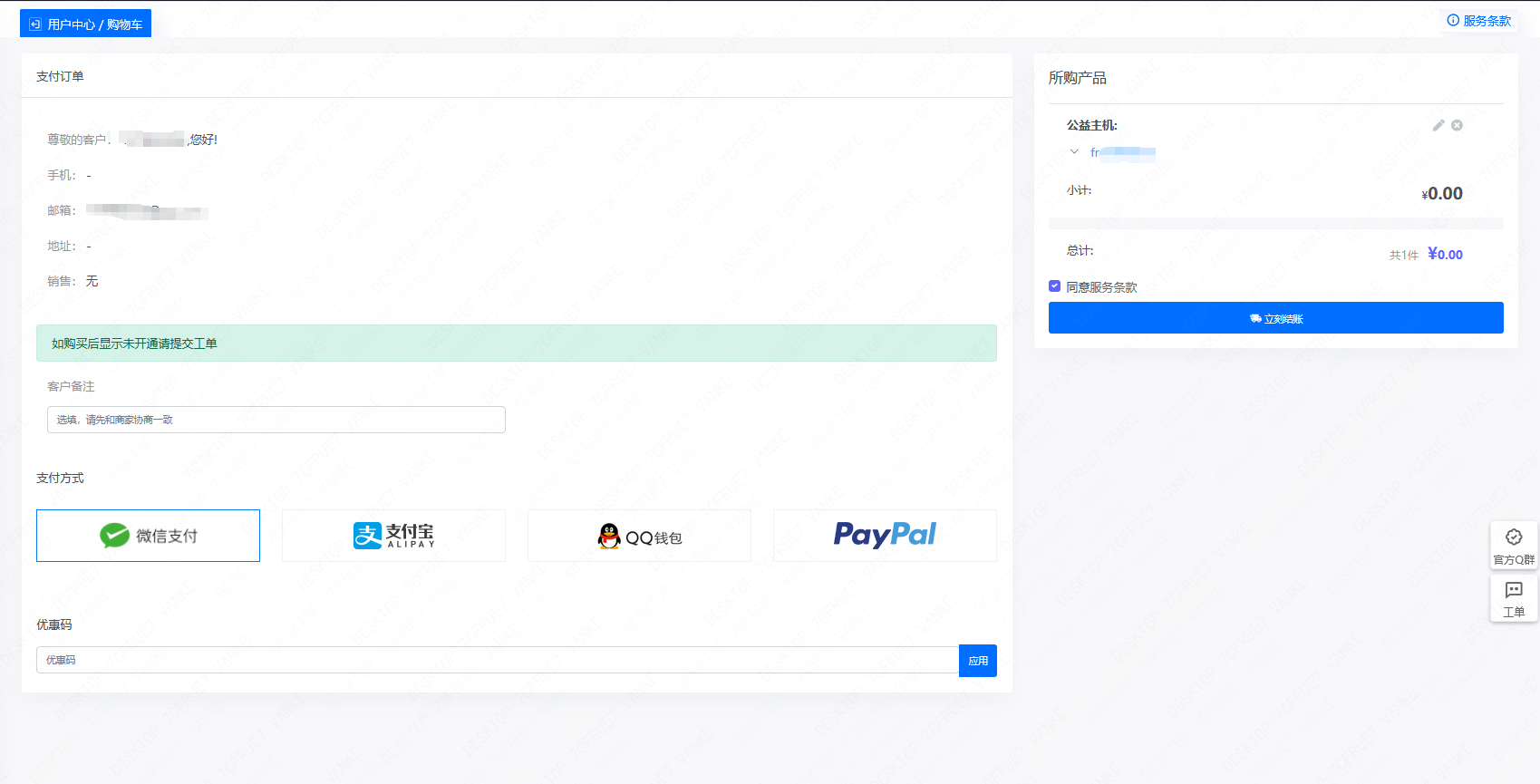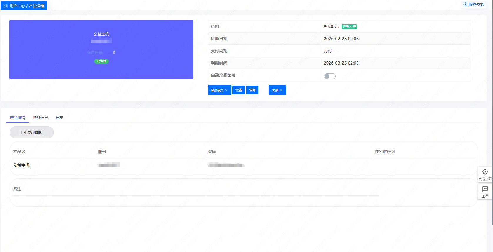 3.登录后台 订购产品