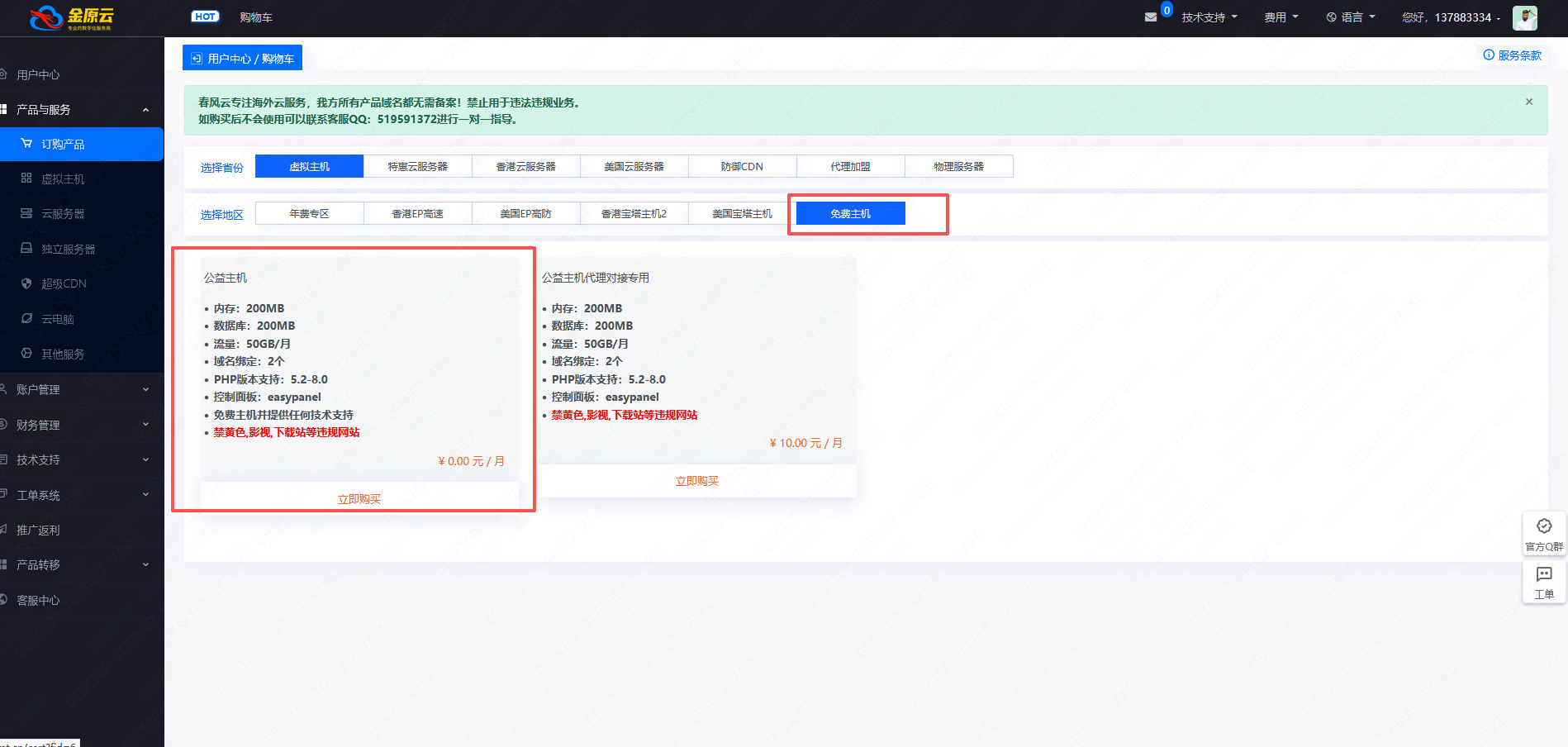 选择免费专区-公益主机