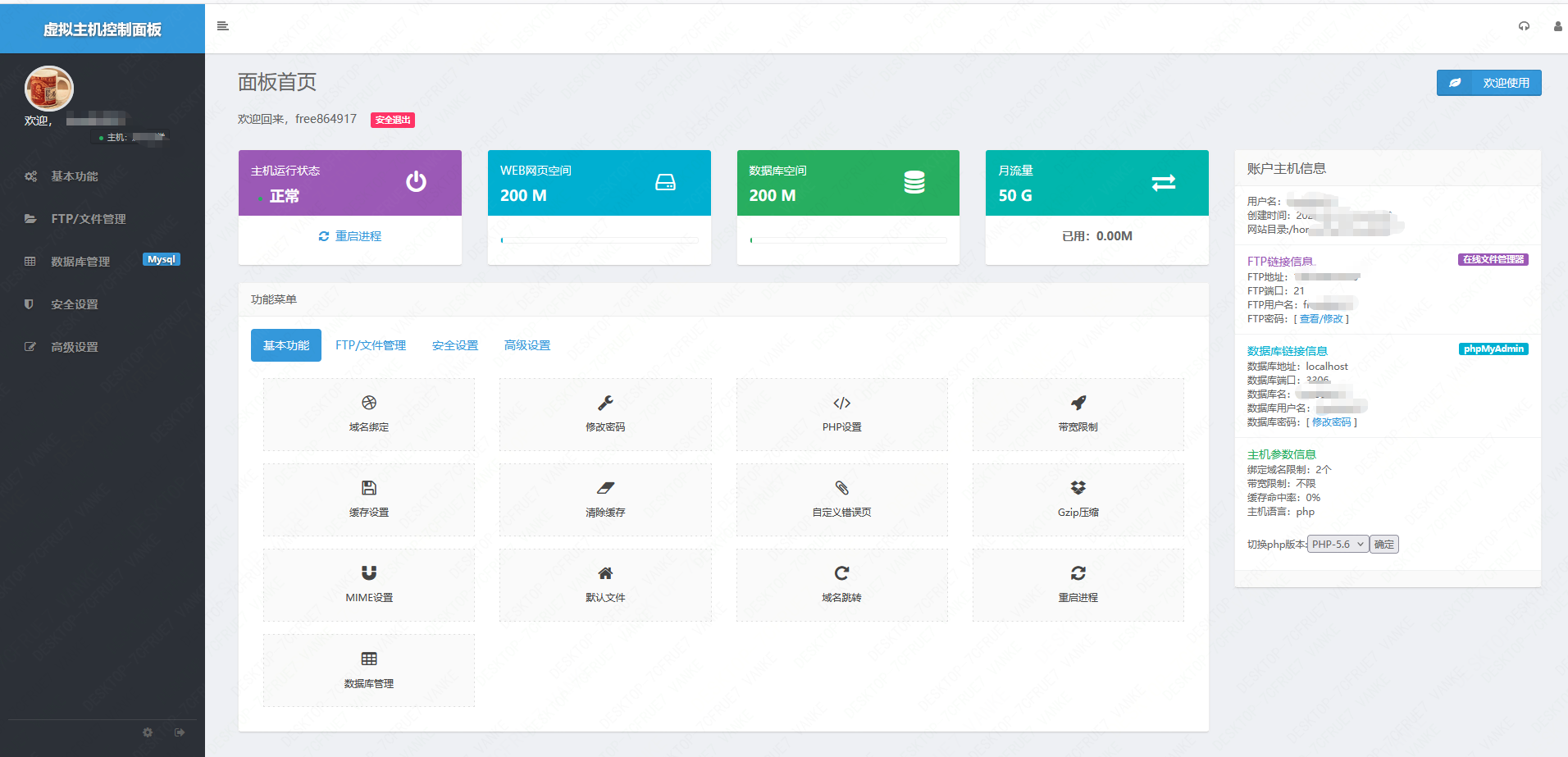 虚拟主机操控后台展示: