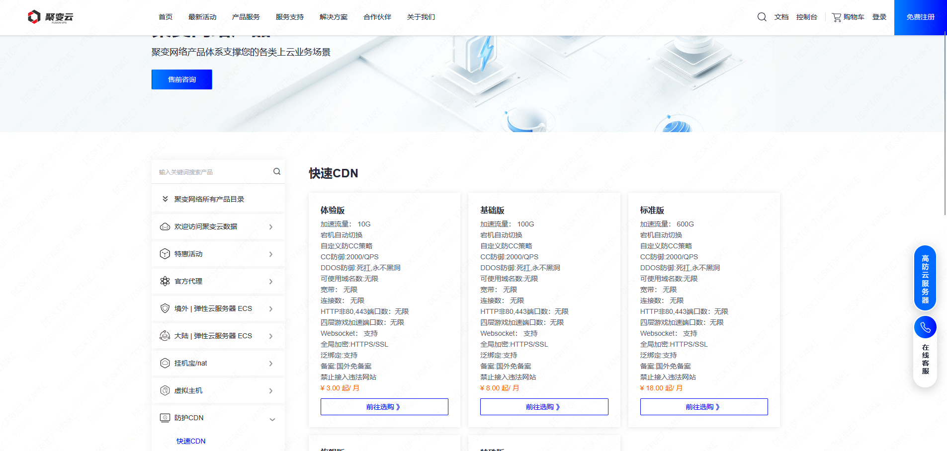 聚变云推出3元10G 不限域名,不限连接数,不限制端口的良心CDN厂商,更有美国特价CN2 VPS